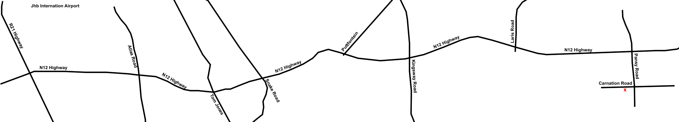 - Take left turn onto N12 (Witbank Highway) Travel 8km